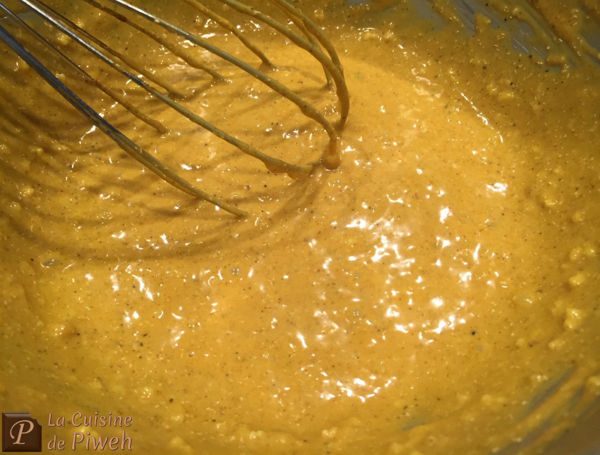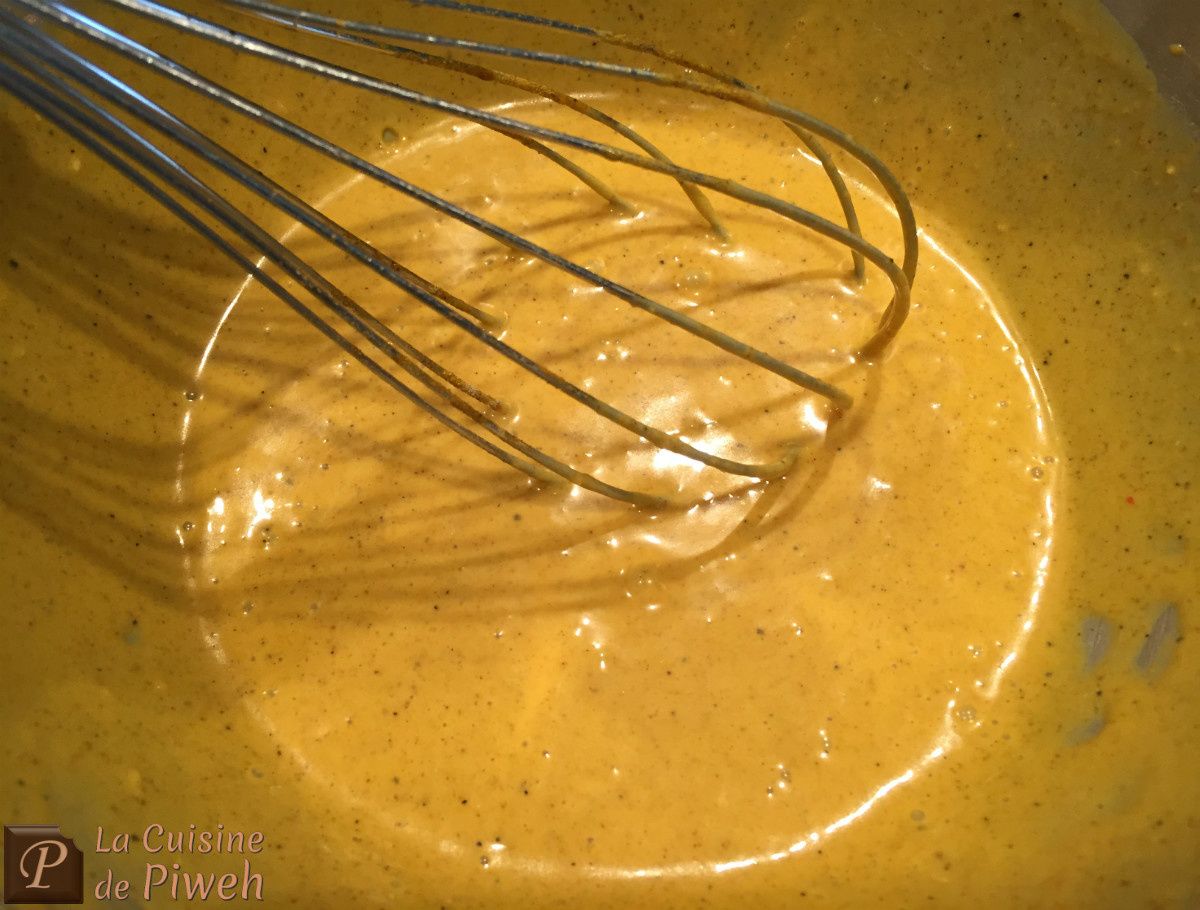 - Ajouter ensuite le curry, la coriandre, les piments et une pincée de sel. Une fois la préparation bien homogène ajouter la farine et bien mélanger.