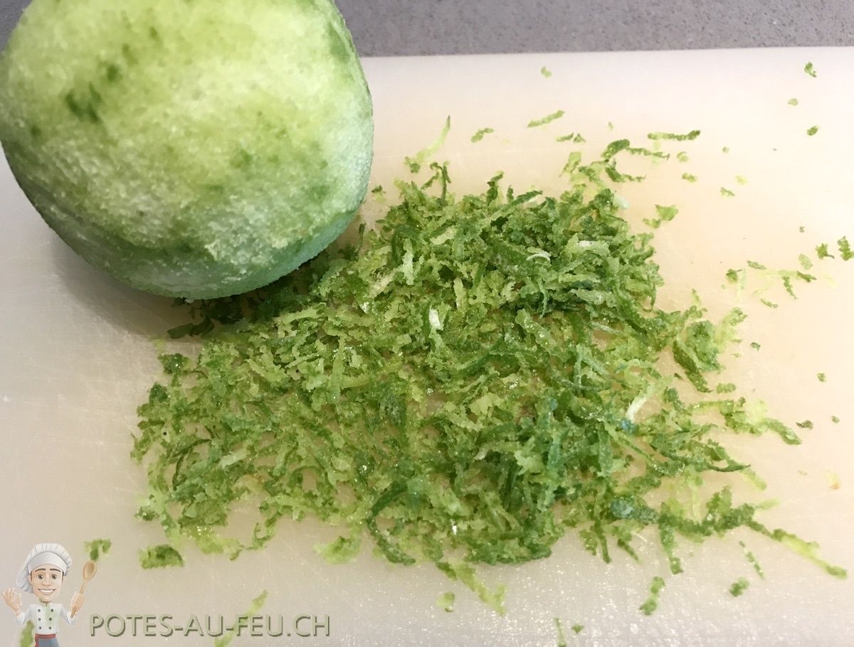 - Extraire le jus du citron vert dont on a retiré le zeste.